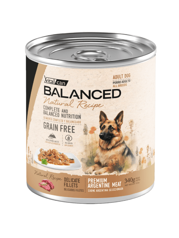Alimento Húmedo Vitalcan Balanced Natural Recipe Perro Adulto Delicados Filetes de Carne Lata x 340gr.