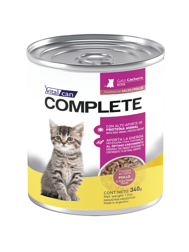 Alimento Húmedo Vitalcan Complete Gato Kitten Trocitos de Pollo en Salsa Lata x 340gr.