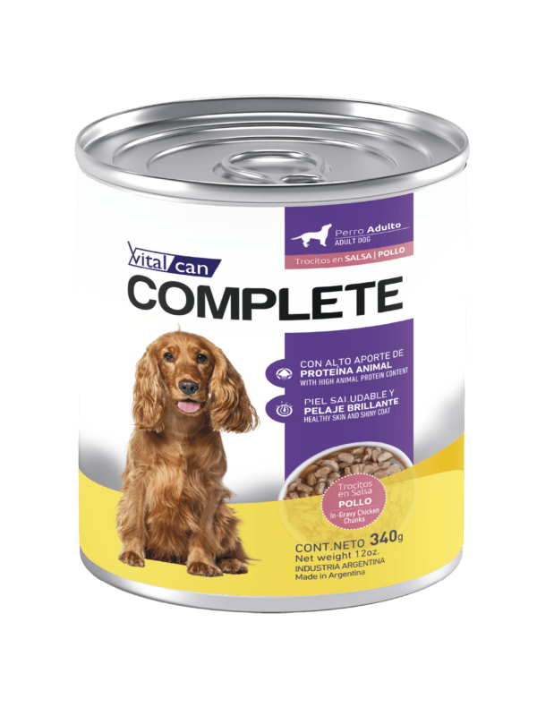 Alimento Húmedo Vitalcan Complete Perro Adulto Trocitos de Pollo en Salsa Lata x 340gr.