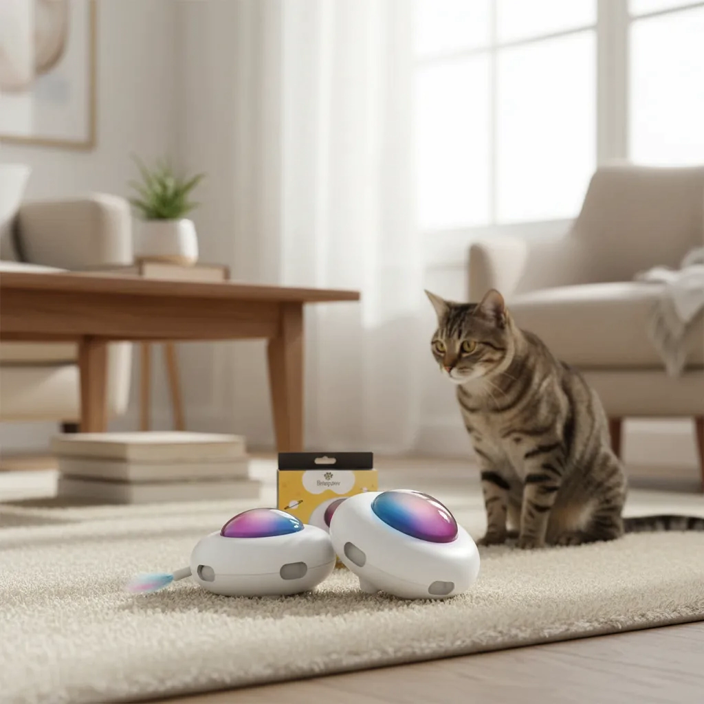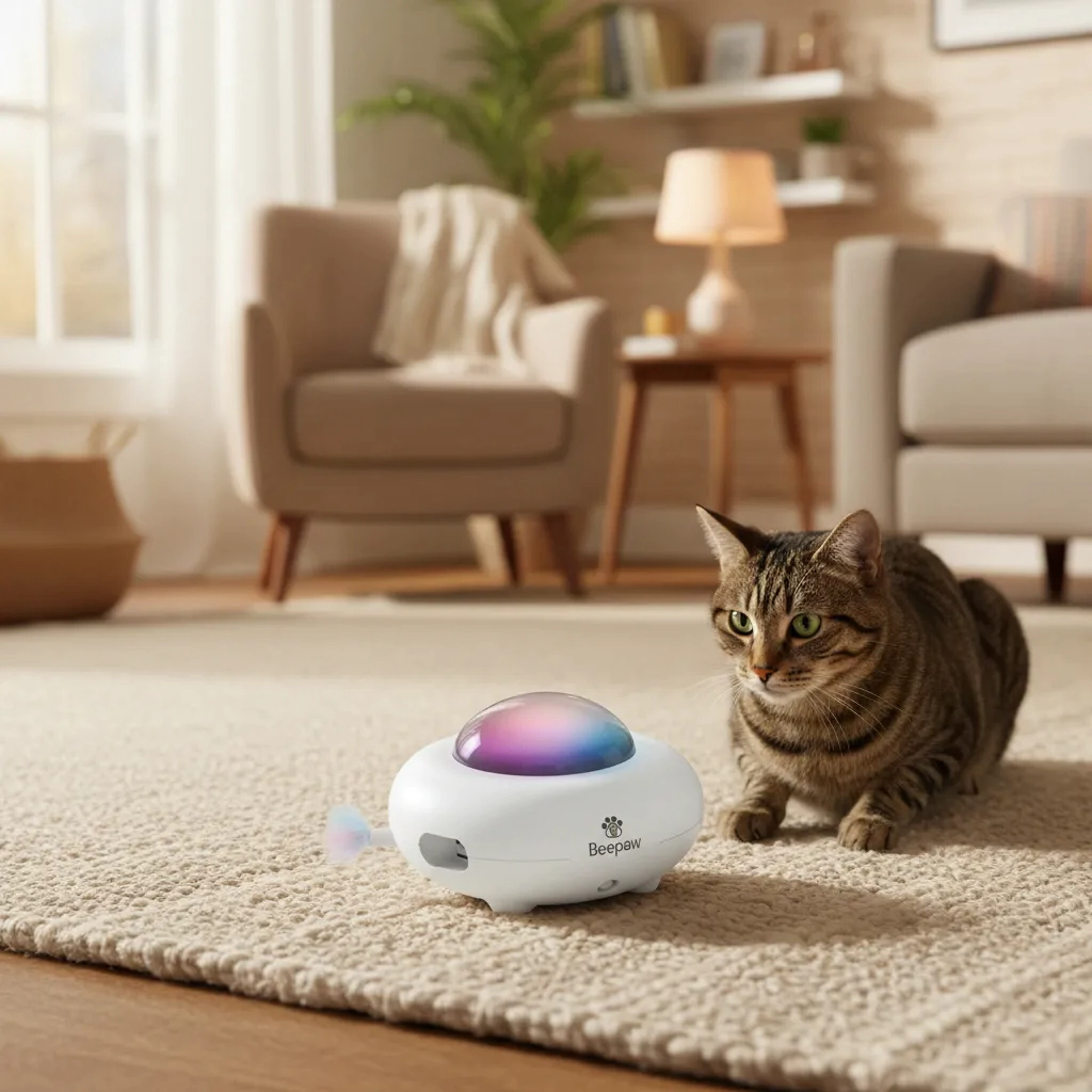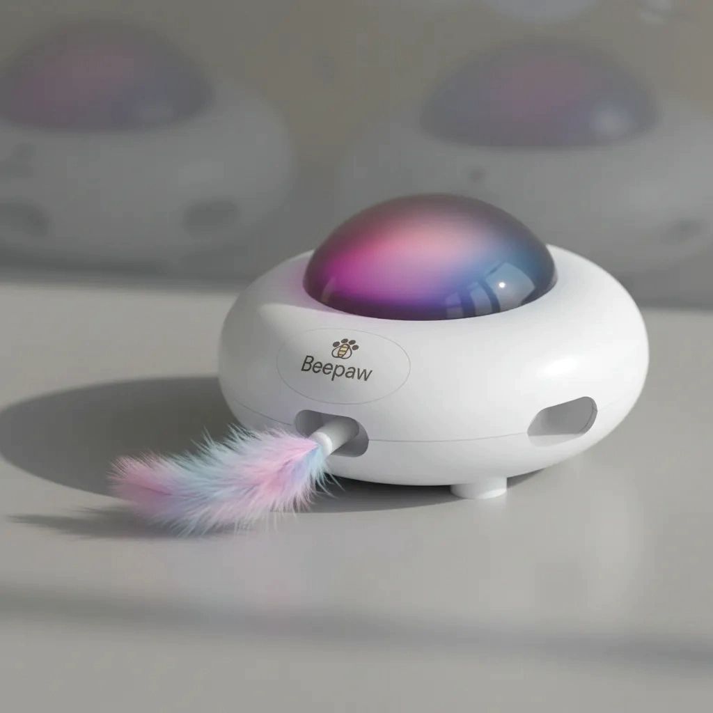 El juguete interactivo Ovn-E de Beepaw es la mejor opción para mantener a tu gato entretenido, activo y estimulado mentalmente. Su diseño innovador, con luces LED llamativas y plumas que emergen al azar, despierta el instinto de caza y juego en gatos de todas las edades. Cuenta con tres velocidades ajustables y diferentes modos de funcionamiento, incluyendo el modo inteligente, que permite que el juguete se reactive automáticamente cada 4 horas durante el día.