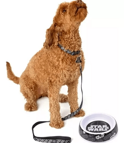 SET PARA MASCOTAS DE STAR WARS DARTH VADER TALLE M . PERFECTO PARA PERROS Y GATOS: regala a tus amigos peludos este divertido y práctico set en caja temática que incluye un collar, una correa, un dije y un comedero o bebedero.